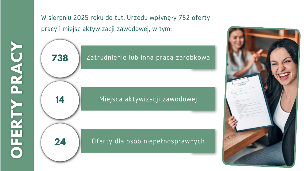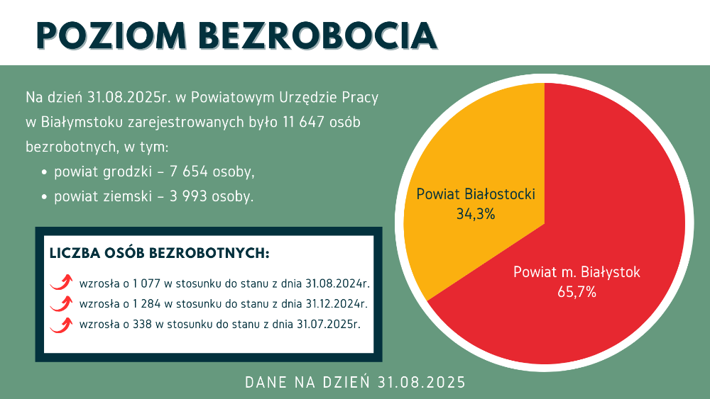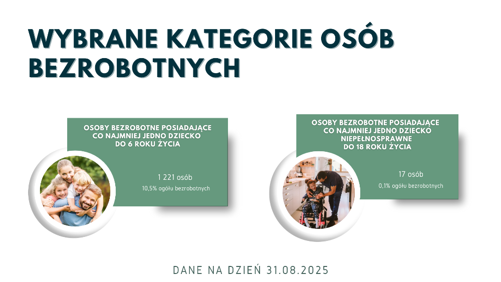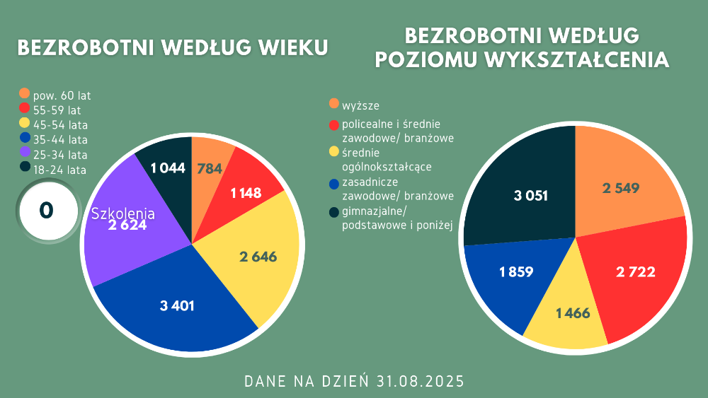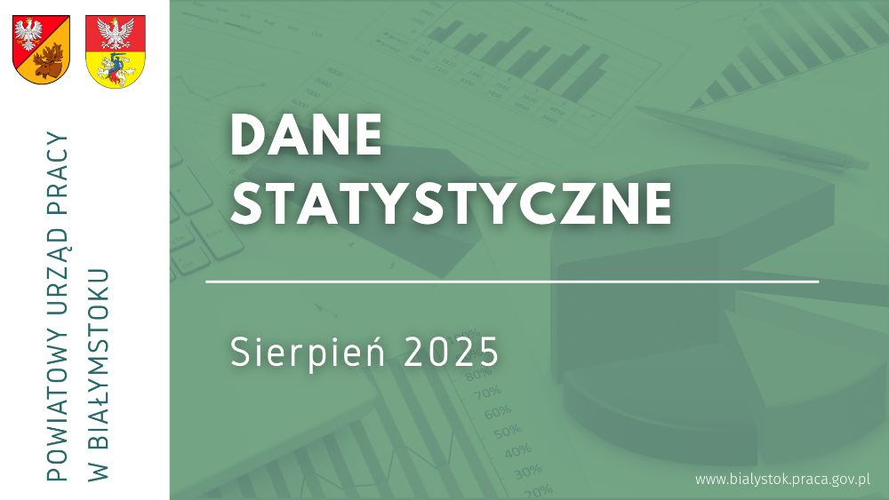 Miesięczna statystyka graficzna - sierpień 2025 r.  - strona tytułowa Miesięczna statystyka graficzna - sierpień 2025 r.  - poziom bezrobocia Miesięczna statystyka graficzna - sierpień 2025 r.  - struktura bezrobocia Miesięczna statystyka graficzna - sierpień 2025 r.  - bezrobotni wg wieku i wg poziomu wykształcenia Miesięczna statystyka graficzna - sierpień 2025 r.  - wybrane kategorie osób bezrobotnych: długotrwale bezrobotni, osoby niepełnosprawne, osoby do 30 roku życia, osoby do 50 roku życia Miesięczna statystyka graficzna - sierpień 2025 r.  - osoby bezrobotne posiadające co najmniej jedno dziecko: do 6 roku życia, niepełnosprawne do 18 roku życia Miesięczna statystyka graficzna - sierpień 2025 r.  - bilans bezrobocia Miesięczna statystyka graficzna - sierpień 2025 r.  - programy przeciwdziałania bezrobociu Miesięczna statystyka graficzna - sierpień 2025 r.  - oferty pracy